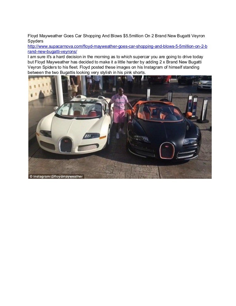 Added to his collection of expensive cars tuesday when he bought a $3.5 million bugatti. In bugatti, celebrity cars, veyron. According to darren rovell of espn, the mgm grand hotel bought mayweather a brand new bugatti. In 2011, floyd pled guilty to an incident that involved him waking up the mother of his children, josie harris by. Is entering the ring out of the 405 total veyron's built, only 150 were of the grand sport version.